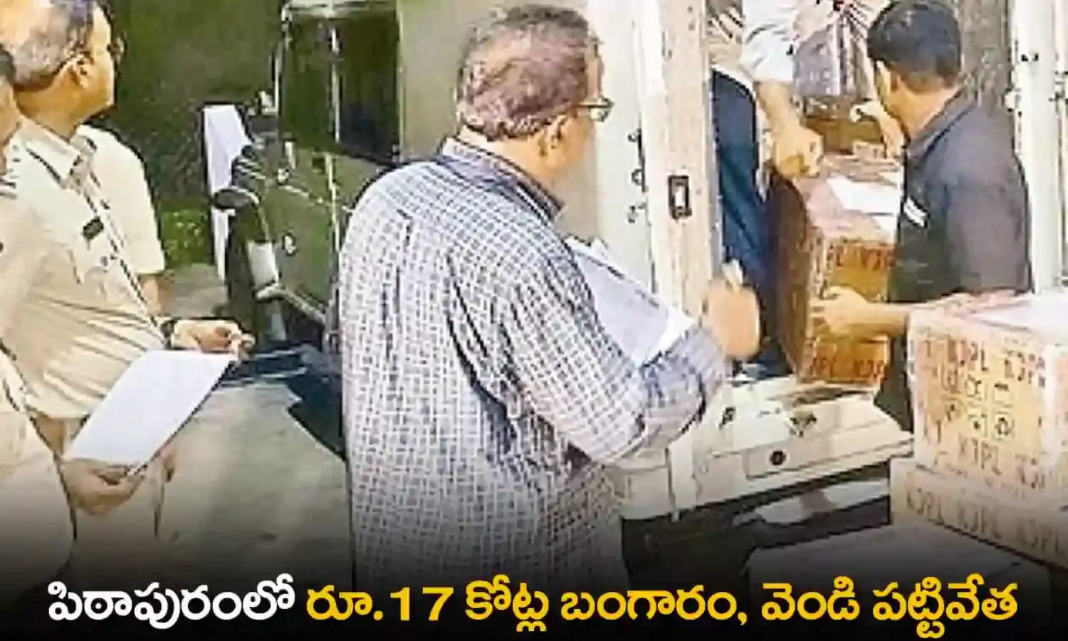 పిఠాపురంలోని గొల్లప్రోలు టోల్ ప్లాజా వద్ద రూ.17 కోట్ల విలువైన బంగారం, వెండి వస్తువుల్ని అధికారులు తాజాగా పట్టుకున్నారు. వాటికి సరైన ఆధారాలు లేకపోవడంతో సీజ్ చేసి కాకినాడలోని జిల్లా ఖజానాకు తరలించారు. పట్టుబడిన వాహనం వైజాగ్ నుంచి కాకినాడ వెళ్తున్నట్లు తెలుస్తోంది. ఏప్రిల్ 13న కూడా ఇదే తరహాలో రూ. 3 కోట్ల విలువైన బంగారాన్ని పోలీసులు స్వాధీనం చేసుకున్నట్లు తెలిపారు. మరి ఆ బంగారం ఎవరిదీ..? ఎక్కడికి తీసుకెళ్తున్నారు..? తదితర విషయాలు తెలియాల్సి ఉంది. కాగా.. పిఠాపురం నుంచి జనసేనాని పవన్ అసెంబ్లీ బరిలో ఉన్న సంగతి తెలిసిందే. ఈ నేపథ్యంలో అక్కడి ప్రతి అంశం వార్తల్లో నిలుస్తోంది. ఏపీలో మరో వారం రోజుల్లో సార్వత్రిక ఎన్నికలు జరగనుంది. ఈ తరుణంలో చివరి రోజుల్లో పెద్ద ఎత్తున నగదు చేతులు మారతాయని ఎన్నికల సంఘం నిఘా పెంచింది