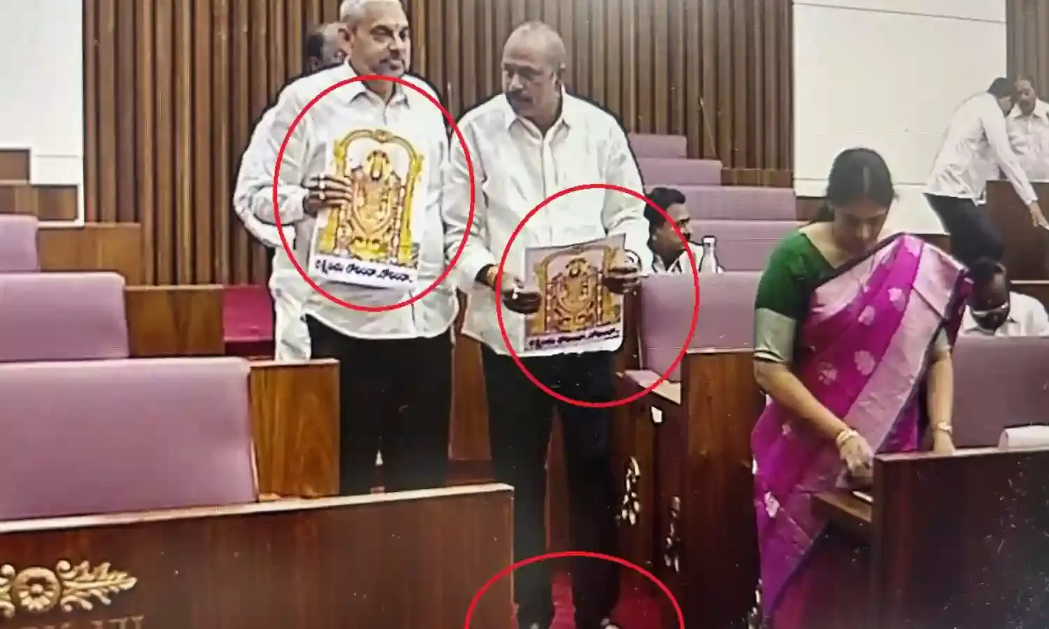 హిందువులు కలియుగ దైవంగా భావించే శ్రీ వెంకటేశ్వర స్వామి ఫొటోలను చెప్పులు, షూలు వేసుకుని శాసన మండలిలో ప్రదర్శించడం వివాదాస్పదంగా మారింది. వైసీపీ మండలి సభ్యులు ఈ విధంగా వ్యవహరించడం హిందువుల మనోభావాలను దెబ్బతీసిందని పలువురు అభిప్రాయపడుతున్నారు. హిందువులు కలియుగ దైవంగా ఆరాధించే శ్రీ వెంకటేశ్వర స్వామి వారి చిత్రపటాలతో మండలిలో జరిగిన ఘటనపై తీవ్ర విమర్శలు వ్యక్తమవుతున్నాయి. స్వామివారి చిత్రాలను చేతబట్టి చెప్పులు, షూలతోనే మండలిలో ప్రదర్శించడంపై ఆధ్యాత్మిక వర్గాలు ఆగ్రహం వ్యక్తం చేశాయి. హిందూ సంప్రదాయాల ప్రకారం దేవతా చిత్రాలను అత్యంత భక్తి, గౌరవాలతో చూడాల్సి ఉండగా, వాటిని ఈ విధంగా ప్రదర్శించడం అనుచితమని విమర్శలు వెల్లువెత్తుతున్నాయి. పవిత్రమైన వేదికగా భావించే శాసన మండలిలో ఇలాంటి ఘటన జరగడం బాధాకరమని పలువురు పేర్కొన్నారు. సంబంధిత సభ్యులపై చర్యలు తీసుకోవాలనే డిమాండ్లు వినిపిస్తున్నాయి. ప్రజల ఆధ్యాత్మిక విశ్వాసాలను గౌరవించడం ప్రతి ప్రజాప్రతినిధి బాధ్యత అని అభిప్రాయాలు వ్యక్తమవుతున్నాయి.