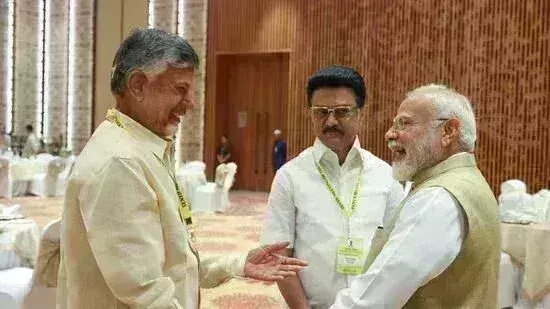 నీతి ఆయోగ్ గవర్నింగ్ కౌన్సిల్ సమావేశంలో ఏపీ సీఎం చంద్రబాబు నాయుడుపై ప్రధాని నరేంద్రమోదీ ప్రశంసలు కురిపించారు. వికసిత్ భారత్-2047, స్వర్ణాంధ్రపై చంద్రబాబు నివేదిక ఇచ్చారు. 2.4 ట్రిలియన్ డాలర్ల ప్రగతి లక్ష్యంతో ఏపీ ప్రణాళికలు సిద్ధం చేసుకుంటున్నట్టు వివరించారు. ఏపీ అభివృద్ధికి సంబంధించిన అంశాలను ప్రస్తావిస్తూ బ్లూ ప్రింట్ ద్వారా సీఎం చంద్రబాబు వివరించారు. ఈ బ్లూప్రింట్ ప్రజంటేషన్పై ప్రధాని మోదీ అభినందించారు. ఇతర రాష్ట్రాలు కూడా ఆంధ్రప్రదేశ్ అమలు చేస్తున్న సంస్కరణలను అధ్యయనం చేయాలని...సీఎం చంద్రబాబు రూపొందించిన ప్రణాళిక ఇతర రాష్ట్రాలకు మార్గదర్శకంగా ఉంటుందని ప్రధాని మోడీ అన్నారు. ఈ సమావేశంలో వృద్ధిరేటు, ఉపాధి, నైపుణ్యాభివృద్ధి, రెండవ, మూడవ శ్రేణి నగరాల అభివృద్ధి వంటి వివిధ అంశాలపై చంద్రబాబు చర్చించారు. స్వర్ణాంధ్ర విజన్ 2047 ద్వారా 2029 నాటికి రాష్ట్రంలో పేదరికం లేకుండా చేయడమే లక్ష్యంగా ఉన్నామని సీఎం చంద్రబాబు పేర్కొన్నారు. పీ 4 ద్వారా ఈ లక్ష్యాన్ని చేరుకునేందుకు బలంగా సంకల్పించామని సమావేశంలో అన్నారు. వికసిత్ భారత్ 2047 సాకారంలో ఆంధ్రప్రదేశ్ రాష్ట్రం ముందుందని చెప్పుకొచ్చారు. విశాఖకు గ్లోబల్ హంగులు అద్దేలా నాలుగు జోన్ల ఏర్పాటుకు ప్రణాళికలు రచిస్తున్నట్లు చంద్రబాబు తెలిపారు. విశాఖ మోడల్ను అమరావతి, తిరుపతి, గోదావరి, కర్నూలుకు విస్తరించేలా కేంద్రం సహకరించాలని చంద్రబాబు కోరారు.