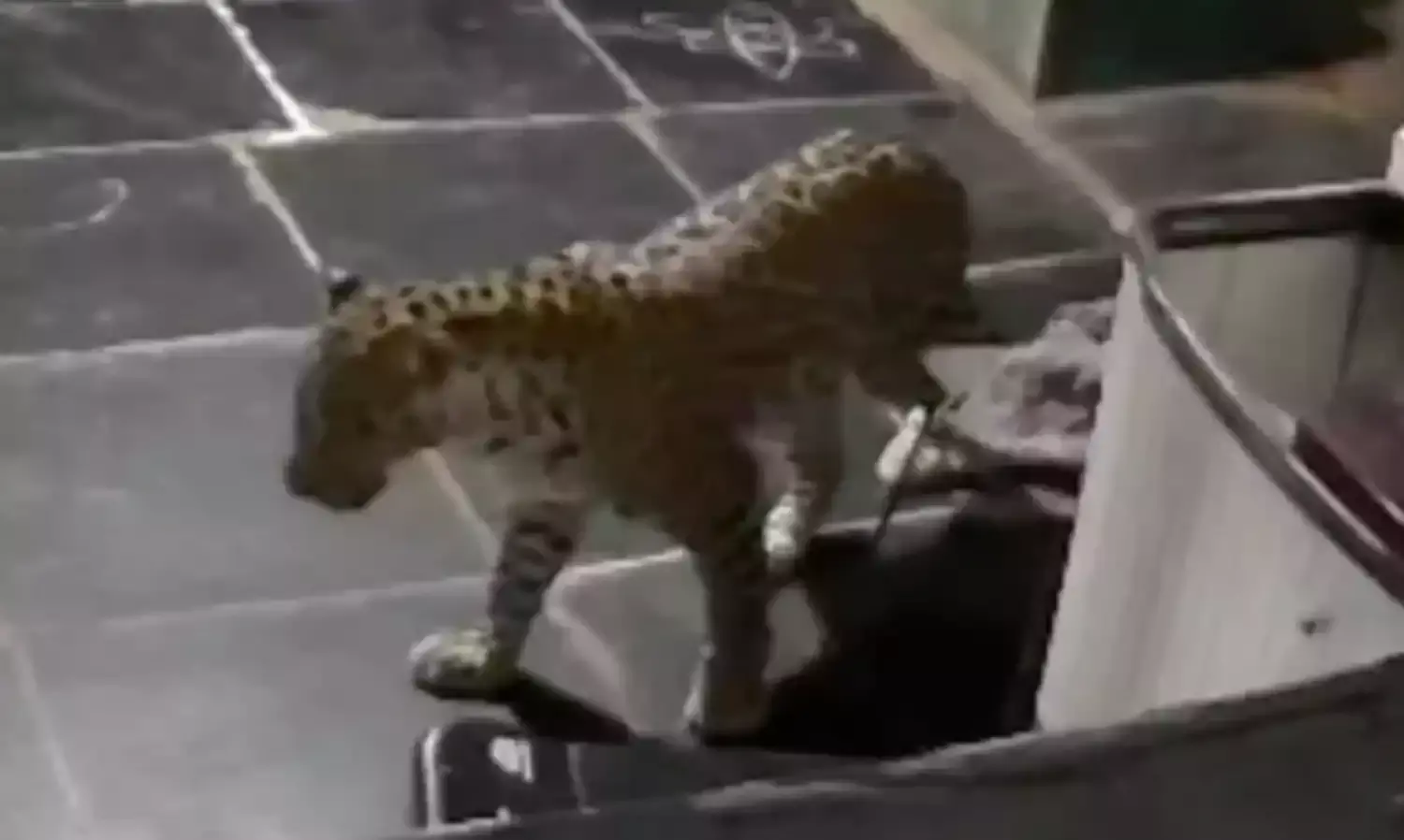 పాతాళగంగ మెట్లవైపు ఉన్న ఓ ఇంటి ప్రాంగణంలో కనిపించిన చిరుత