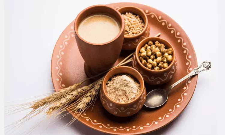 తయారీ విధానం: 1 కప్పు గోధుమ పిండికి 1/2 కప్పు సత్తు పొడితో కలిపాలి. దీనిని 1 స్పూన్ నెయ్యి వేసి దోరగా వేయించాలి. ఈ పొడిని వేడి పాలలో కాస్త చక్కెర లేదా బెల్లం, ఇలాచీ పొడి వేసుకుని తాగాలి.