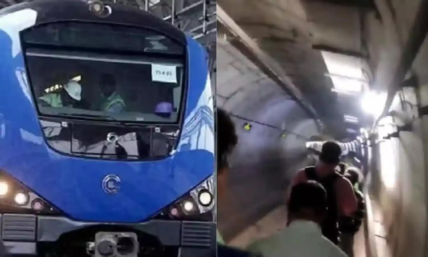 చెన్నైలో మెట్రో ప్రయాణికులకు మంగళవారం ఉదయం ఊహించని అనుభవం ఎదురైంది. బ్లూ లైన్లో ప్రయాణిస్తున్న మెట్రో రైలు సాంకేతిక లోపంతో సొరంగ మార్గంలో అకస్మాత్తుగా నిలిచిపోయింది. దీంతో ప్రయాణికులు రైలు దిగి, సమీపంలోని స్టేషన్కు పట్టాలపై నడుచుకుంటూ వెళ్లాల్సి వచ్చింది.