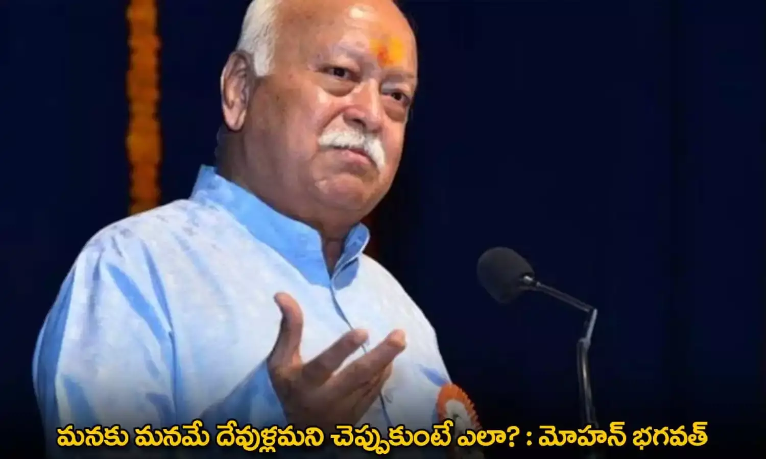 మనకు నమే దేవుళ్లమని ప్రకటించుకోకూడదని.. ఆ విషయాన్ని జనమే నిర్ణయిస్తారని ఆర్ఎస్ఎస్ చీఫ్ మోహన్ భగవత్ పేర్కొన్నారు. 1971లో కీలక నేత శంకర్ దిన్కర్ కానే మణిపూర్ లో చేసిన సేవలను స్మరించుకొంటూ పుణెలో జరిగిన ఓ కార్యక్రమంలో ఆయన ఈ వ్యాఖ్యలు చేశారు. ‘కొందరు మెరుపులా మెరవాలని కోరుకుంటారు. కానీ, పిడుగు పడిన తర్వాత మరింత చీకటిగా మారుతుందని వారు గుర్తించరు. కార్యకర్తలు ఒక దీపంలా .. అవసరమైనప్పుడు నిలకడగా వెలుగునివ్వాలి. శంకర్ దిన్కర్ 1971లో మణిపూర్ లో చిన్నారుల విద్య కోసం తీవ్రంగా కృషి చేశారు. అక్కడినుంచి విద్యార్థులను మహారాష్ట్రకు తీసుకొచ్చి వారికి బస ఏర్పాటుచేసి బోధనా సౌకర్యాలు కల్పించారు. ప్రస్తుతం మణిపూర్ లో భద్రతకు ఎటువంటి హామీ లేకుండా పోయింది. స్థానికులే వారి రక్షణ విషయంలో సందేహాలు వ్యక్తం చేస్తున్నారు. వ్యాపారాలు, సేవా కార్యక్రమాల నిమిత్తం అక్కడికి వెళ్లే వారి పరిస్థితి మరింత దారుణంగా ఉంది. ఈ పరిస్థితుల్లో కూడా ఆర్ఎస్ఎస్ వలంటీర్లు అక్కడ బలంగా నిలిచారు.సంఘ్ అక్కడే ఉండి.. శాంతిని నెలకొల్పేందుకు యత్నిస్తోంది. సాధారణ ఎన్జీవోలు చేయలేని పనిని సంఘ్ చేస్తోంది’ అని మోహన్ భగవత్ తెలిపారు.