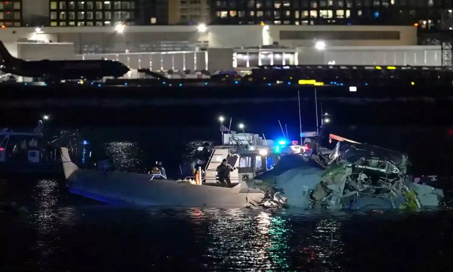 అమెరికా దేశం వాషింగ్టన్లో ఘోర విమాన ప్రమాదం జరిగింది. రోనాల్డ్ రీగన్ నేషనల్ ఎయిర్పోర్టులో ల్యాండింగ్ అవుతుండగా ఓ ప్రయాణికుల విమానం, హెలికాప్టర్ పరస్పరం ఢీకొన్నాయి. ఆ రెండూ పక్కనే ఉన్న పోటోమాక్ నదిలో కూలిపోయాయి. ఘటనా స్థలంలో అధికారులు సహాయక చర్యలు చేపట్టారు. విమానంలో 60 మంది ప్రయాణికులు ఉన్నట్లు తెలుస్తోంది. అమెరికా కాలమానం ప్రకారం నిన్న రాత్రి 8.30 గంటల ప్రాంతంలో ఈ ఘటన చోటుచేసుకుంది. కాన్సాన్ నుంచి వచ్చిన ప్రయాణికుల విమానం ల్యాండింగ్కు ఏటీసీ క్లియరెన్స్ ఇచ్చింది.అదే సమయానికి ఓ మిలిటరీ హెలికాప్టర్ ఆ మార్గంలోకి వచ్చింది. ఆ తర్వాత కేవలం 30 సెకన్లలోపే ఆ రెండూ ఢీకొన్నట్లు శబ్దం వినిపించింది. రన్వేకు 2400 అడుగుల దూరంలో ప్రయాణికుల విమానం నుంచి రేడియో ట్రాన్స్పాండర్ డేటా ఆగిపోయింది. విమానం సరిగ్గా నది మధ్యలో ఉన్నప్పుడే సిగ్నల్స్ ఆగిపోయాయని తెలిసింది. ప్రమాదం కారణంగా విమానం ముక్కలై నదిలో పడిపోయింది. హెలికాప్టర్ కూడా తలకిందులుగా కూలింది. ఘటన సమయంలో విమానంలో 64 మంది, హెలికాప్టర్లో ముగ్గురు సైనికులు ఉన్నారు.