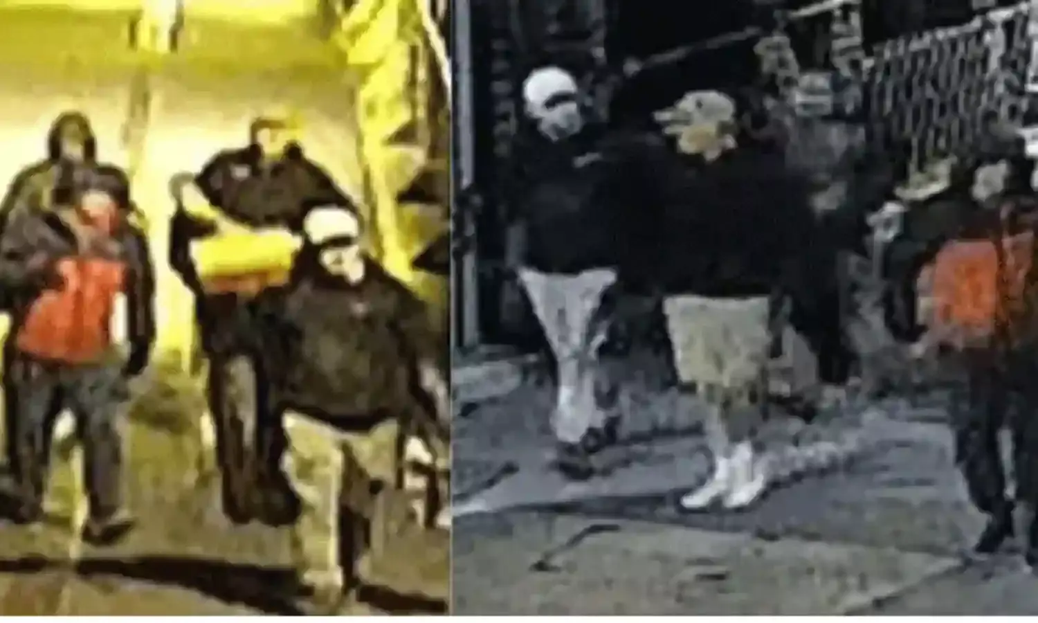 అనుమానితుడు 4: పెద్ద శరీరం, రెండు టోన్ల నారింజ మరియు నేవీ/నలుపు పఫ్డ్ జాకెట్, నల్ల ప్యాంటు మరియు నలుపు మరియు తెలుపు ట్రైనర్లు ధరించి ఉన్నాడు.