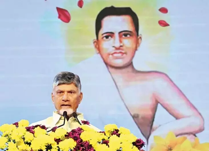 ఆయన ప్రాణాలు విడిచిన చెన్నైలోని భవనాన్ని ‘త్యాగ భవనం’గా గుర్తించి, పరిరక్షిస్తామ’ని చెప్పారు. ‘ప్రజల్ని మభ్య పెట్టేందుకు మెడికల్ కాలేజీల అంశాన్ని కొందరు రాజకీయం చేస్తున్నారు. మెరుగైన చదువు, సేవలు కావాలంటే పీపీపీనే సరైన విధానమని పార్లమెంటరీ కమిటీ స్పష్టం చేసింది. పీపీపీ విధానంలోనే రహదారులు, ఎయిర్ పోర్టులు వంటి సదుపాయాలు అందరికీ అందుబాటులోకి వచ్చాయి. ఇప్పుడు పీ4 తెచ్చాం. 2047 నాటికి ప్రపంచంలోనే తెలుగు జాతిని అగ్రస్థానంలో నిలబెట్టాలన్నదే తమ లక్ష్యం’అని సీఎం చంద్రబాబు నాయుడు స్పష్టం చేశారు. అంతకుముందు అమరజీవి జీవిత విశేషాలను వివరిస్తూ ఏర్పాటు చేసిన ఫోటో ఎగ్జిబిషన్ చంద్రబాబు తిలకించారు. ఆర్య వైశ్యుల కులదైవం వాసవీ కన్యకా పరమేశ్వరి ఆత్మార్పణ దినాన్ని అధికారికంగా నిర్వహిస్తున్నాం. అమ్మవారు జన్మించిన పశ్చిమగోదావరి జిల్లా పెనుగొండ గ్రామం పేరును వాసవీ పెనుగొండ అని మార్చాం. ఆర్య వైశ్యుల విన్నపం మేరకు కేస్ట్ సర్టిఫికెట్లలో మార్పులు చేస్తున్నాం’అని సీఎం చంద్రబాబు నాయుడు పేర్కొన్నారు. వాసవీ పెనుగొండ మండలంగా పేరు మార్చినందుకు మహిళలు ముఖ్యమంత్రికి ధన్యవాదాలు తెలియచేస్తూ ప్లకార్డులు ప్రదర్శించారు.
