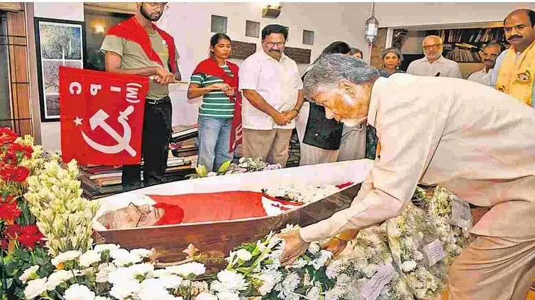 పేద ప్రజల కోసం పోరాడిన వ్యక్తి సీతారాం ఏచూరి అని ఏపీ సీఎం చంద్రబాబునాయుడు అన్నారు. ఆయన చేసిన పోరాటాన్ని వాళ్లు శాశ్వతంగా గుర్తుపెట్టుకుంటారని చెప్పారు. సీపీఎం ప్రధాన కార్యదర్శి ఏచూరితో తనకు ఆత్మీయ అనుబంధం ఉందని తెలిపారు. అందుకే ఆయన్ను కడసారి చూసి, నివాళులు అర్పించేందుకు ఢిల్లీ వచ్చినట్లు చెప్పారు. చంద్రబాబు శుక్రవారమిక్కడ సీతారాం ఏచూరి భౌతికకాయానికి నివాళులర్పించారు. ఏచూరి కుటుంబసభ్యులకు సానుభూతి తెలిపారు. ఏచూరి మరణాన్ని జీర్ణించుకోలేకపోతున్నానన్నారు. 40 ఏళ్లుగా ఆయన్ను దగ్గరి నుంచి చూశానని, మంచి నాయకుడని చెప్పారు. ఎన్నో పోరాటాల్లో ఆయనతో కలిసి నడిచినట్లు తెలిపారు. ఒక సాధారణ కుటుంబంలో పుట్టిన సీతారాం అసాధారణ వ్యక్తిగా ఎదిగారన్నారు. కమ్యూనిజం పట్ల ఆసక్తి పెంచుకుని, ఆ పార్టీలో చేరి అంచలంచెలుగా ఎదిగి, పార్టీకి జాతీయ ప్రధాన కార్యదర్శి అయ్యారని కొనియాడారు. అందరినీ నవ్వుతూ పలకరిస్తూ కలుపుగోలుగా ఉండేవారని గుర్తు చేసుకున్నారు. దేశం గొప్ప రాజకీయ నాయకుడిని కోల్పోయినందుకు బాధగా ఉందని చెప్పారు. అంతకుముందు ఏచూరి మృతదేహన్ని ఎయిమ్స్ నుంచి జేఎన్యూకు తరలించారు. తర్వాత ఆయన స్వగృహానికి తరలించారు.