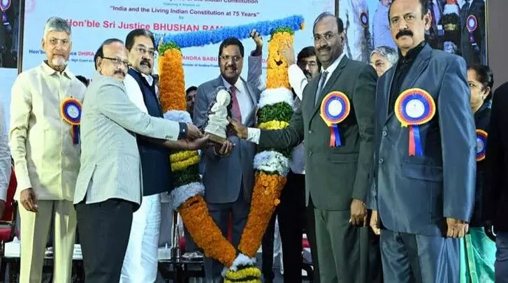 బీఆర్ అంబేడ్కర్ అత్యున్నతమైన రాజ్యాంగం రూపొందించారని ఏపీ సీఎం చంద్రబాబు అన్నారు. చాయ్వాలా దేశానికి ప్రధాని అయ్యారంటే అది మన రాజ్యాంగం వల్లేనని పేర్కొన్నారు. ‘‘ఆర్థిక సంస్కరణలు దేశ దిశనే మార్చేశాయి. 2014లో 11వ ఆర్థిక వ్యవస్థగా ఉన్న మనం ఇప్పుడు నాలుగో ఆర్థిక వ్యవస్థకు చేరాం. వచ్చే ఏడాది భారత్ ప్రపంచంలో మూడో, 2038 నాటికి రెండో అతిపెద్ద ఆర్థిక వ్యవస్థగా కాబోతోంది. 2047 నాటికి భారత్ ప్రపంచంలోనే అతి పెద్ద ఆర్థిక వ్యవస్థగా అవతరించాలన్నది లక్ష్యం. ప్రజాస్వామ్యం గాడి తప్పినప్పుడు న్యాయ వ్యవస్థే దాన్ని గాడిన పెడుతోంది. మీడియా రంగంలోనూ ఇటీవల చాలా మార్పులు వచ్చాయి. సోషల్ మీడియాలో ప్రతి ఒక్కరూ రైటరే.. ప్రతి ఒక్కరూ ఎడిటరే. సామాజిక మాధ్యమాలను వ్యక్తిత్వ హననానికి ఉపయోగించడం దురదృష్టకరం’’ అని చంద్రబాబు అన్నారు.