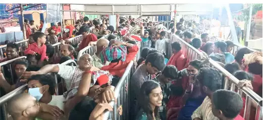 ఇంద్రకీలాద్రిపై దసరా మహోత్సవాలు ముగిశాయి. శరన్నవరాత్రుల చివరి రోజున రాజరాజేశ్వరిదేవి అలంకారంలో అమ్మవారు భక్తులకు దర్శనం ఇచ్చారు. తెల్లవారుజాము నుంచే దర్శనం కోసం భక్తులు తండోపతండాలుగా వస్తున్నారు. పుణ్యస్నానాలు ఆచరించి రాజరాజేశ్వరి దేవి ఆశీస్సులు తీసుకున్నారు. ఉదయం నుంచే భక్తులు బారులు తీరడంతో క్యూలైన్లు కిక్కిరిపోయాయి. గురువారం మధ్యాహ్నానికే 94,723 మంది భక్తులు అమ్మవారిని దర్శించుకున్నారు. భవానీ మాలధారులు ఇంద్రకీలాద్రికి పెద్దఎత్తున తరలివచ్చారు. దీంతో క్యూలైన్లు మెుత్తం 'జై దుర్గా.. జైజై దుర్గా' నామస్మరణలతో మార్మోగిపోయాయి. భక్తుల కోసం అధికారులు సకల సౌకర్యాలూ కల్పించారు. వారికి మంచినీళ్లు, మజ్జిగ, పాలు వంటివి అందించారు.రాత్రి 11 గంటల వరకూ అమ్మవారిని దర్శించుకునేందుకు అవకాశం కల్పించారు. భక్తుల రద్దీని దృష్టిలో ఉంచుకుని, సామాన్య భక్తులకు ప్రాధాన్యతనిచ్చేందుకు వీఐపీ, వీవీఐపీ బ్రేక్ దర్శనాలను పూర్తిగా రద్దు చేశారు. అందరికీ సమానంగా అమ్మవారి దర్శనం కల్పించాలనే ఉద్దేశంతో ఈ నిర్ణయం తీసుకున్నారు. భక్తులకు తాగునీరు, ఇతర మౌలిక సదుపాయాలు ఏర్పాటు చేశారు.