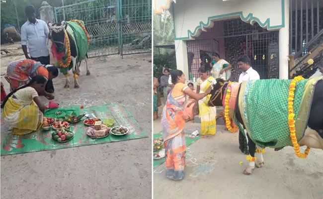 Anantapur: అనంతపురంలో ఆవుకు సీమంతం.. చీర, పూలు, పిండి పదార్ధాలతో ఘనంగా..