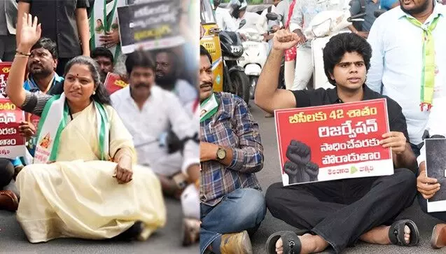 తెలుగు రాష్ట్రాలలో తెలంగాణ జాగృతి అధ్యక్షురాలు కవితకు, ఏపీ కాంగ్రెస్ చీఫ్ వైఎస్.షర్మిలకు చాల విషయాల్లో పోలిక కనిపిస్తుంటుంది. ఇద్దరు కూడా తమ అన్నలు కేటీఆర్, జగన్ లతో పేచీలు, రాజకీయంగా సొంత పార్టీల నుంచి గెంటివేతలకు గురైన వారే. వారిద్దరు ప్రస్తుతం సొంతంగా తమ రాజకీయ ఎదుగుదలకు ప్రయత్నిస్తున్నారు. షర్మిల ఏపీ కాంగ్రెస్ నుంచి తన రాజకీయ పోరాటాన్ని కొనసాగిస్తోంది. కవిత తెలంగాణ జాగృతి నుంచి తెలంగాణ యాత్రకు సిద్దమవుతోంది. తాజాగా వారి వారసులను కూడా వారు రాజకీయ తెరపైకి తేవడం హాట్ టాపిక్ గా మారింది. ఇందులోనూ వారిద్దరి మధ్య మంచి పోలికే కుదిరింది. ఇటీవల కర్నూలు ఉల్లి మార్కెట్ కి తల్లి షర్మిలతో కలిసి ఆమె కుమారుడు రాజారెడ్డి సందడి చేశారు. తాజాగా బీసీ బంద్ లో పాల్గొన్న కవిత కుమారుడు ఆదిత్య సర్ ప్రైజ్ ఇచ్చారు. ఇలా తెలుగు రాష్ట్రాల పొలిటికల్ స్క్రీన్ పై కవిత, షర్మిల రాజకీయ వారసులు తళుక్కుమన్నారు.