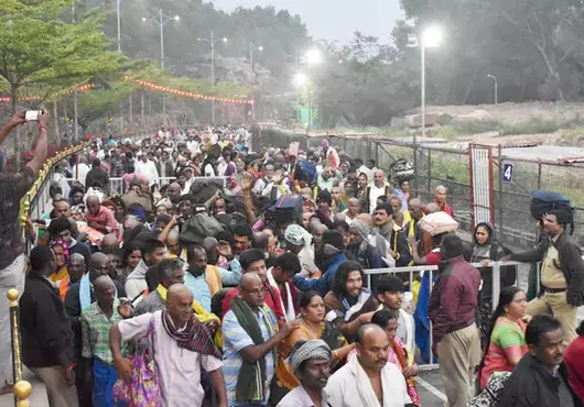 తిరుమల శ్రీవారి ఆలయంలో డిసెంబర్ 30న ప్రారంభమైన వైకుంఠద్వార దర్శనాలు ప్రశాంతంగా సాగుతున్నాయి. మొదటి 3 రోజులు ఈ-డిప్ దర్శన టోకెన్లు కలిగిన భక్తులను అనుమతించారు. వారిని శిలాతోరణం, కృష్ణతేజ, ఏటీజీహెచ్ ప్రవేశ మార్గాల నుంచి టోకెన్లను స్కాన్ చేసి దర్శన క్యూలైన్లలోకి అనుమతించారు. గురువారం తెల్లవారుజాము నుంచి సాయంత్రం 5 గంటల వరకు 40,008 మంది భక్తులు స్వామివారిని దర్శించుకున్నట్లు తిరుమల తిరుపతి దేవస్థానం తెలిపింది. ఇప్పటివరకు 1,77,337 మంది వైకుంఠ ద్వార దర్శనం చేసుకున్నట్లు పేర్కొంది. ఈ-డిప్ టోకెన్లు పొందిన భక్తుల దర్శనాలు పూర్తయిన తర్వాత టోకెన్లు లేని సర్వదర్శనం భక్తులను శ్రీవారి వైకుంఠ ద్వార దర్శనానికి అనుమతించేందుకు వీలుగా అక్టోపస్ భవనం పాయింట్ నుంచి సర్వదర్శనం క్యూలైన్లోకి అనుమతిస్తున్నారు. తిరుమల శ్రీవారి దర్శనానికి వచ్చే భక్తులతో తిరుపతిలో రద్దీ పెరుగుతోంది. వివిధ ప్రాంతాల నుంచి పెద్ద ఎత్తున చేరుకుంటున్నారు. వైకుంఠ ద్వార దర్శనాలు ఈనెల 8 వరకు కొనసాగుతాయి.