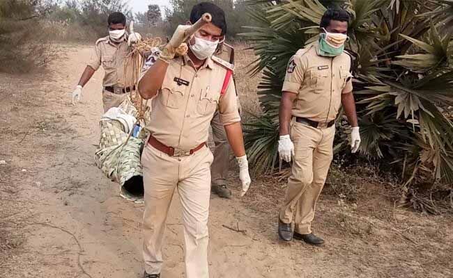 పోలీసుల మానవత్వం... అనాధ శవాన్ని భుజాలపై మోసి.. !