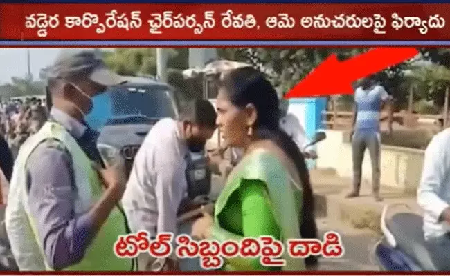 వడ్డెర కార్పొరేషన్ ఛైర్పర్సన్ రేవతి గుంటూరు నుంచి విజయవాడ వైపు వెళ్తుండగా ఈ గొడవ జరిగింది. మినహాయింపు ఇచ్చే వాహనాల లిస్ట్లో ఈ వాహనం లేనందున తాము ఏమీ చేయలేమని టోల్ సిబ్బంది చెప్పడంతో ఆమె ఆగ్రహంతో ఊగిపోయారు. సిబ్బందిపై చెయ్యి చేసుకున్నారు. బాధ్యతాయుతమైన ఒక పదవిలో ఉంది కూడా రేవతి ఇలా రెచ్చిపోయి దాడికి దిగడం పట్ల తీవ్ర విమర్శలు వెల్లువెత్తుతున్నాయి. వడ్డెర కార్పొరేషన్ ఛైర్మన్ అంటూ బోర్డు కారుకు పెట్టుకున్నంత మాత్రాన నిబంధనలకు విరుద్ధంగా ప్రవర్తించడం సరికాదని అంటున్నారు.