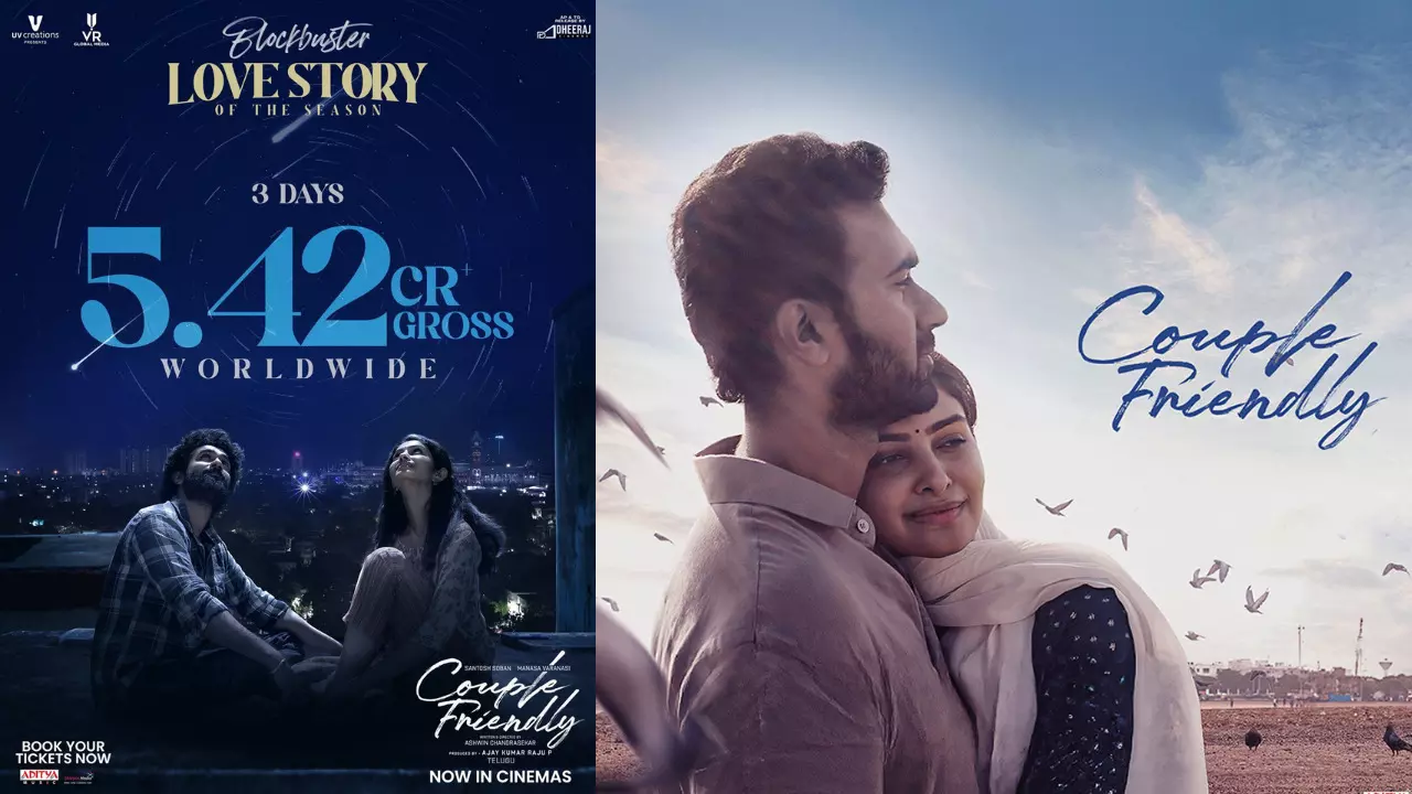 సంతోష్ శోభన్, మానస వారణాసి జంటగా నటించిన లేటెస్ట్ సూపర్ హిట్ మూవీ "కపుల్ ఫ్రెండ్లీ" బాక్సాఫీస్ వద్ద స్టడీ కలెక్షన్స్ తో దూసుకెళ్తోంది. ఈ హార్ట్ టచింగ్ ప్రేమ కథ మూడు రోజుల్లోనే 5.42 కోట్ల రూపాయల వసూళ్లను దక్కించుకుంది. ఈ సినిమాకు రెబల్ స్టార్ ప్రభాస్, స్టార్ బాయ్ సిద్దు జొన్నలగడ్డ వంటి స్టార్స్ ప్రశంసలు అందిస్తున్నారు. మూవీ టీం చేస్తున్న ప్రమోషనల్ టూర్ కూడా ప్రేక్షకుల్లోకి సినిమాను బాగా తీసుకెళ్తోంది.