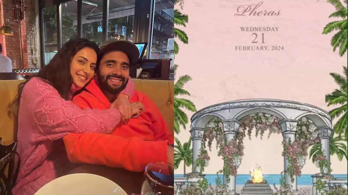 బాలీవుడ్ నటి రకుల్ ప్రీత్ సింగ్, నిర్మాత-నటుడు జాకీ భగ్నానీ ఫిబ్రవరి 21న పెళ్లి చేసుకోబోతున్నారు. వారి పెళ్లి కార్డుకు సంబంధించిన ఫోటోలు ఇంటర్నెట్లో హల్ చల్ చేస్తున్నాయి. అందులో సెలబ్రిటీ జంట ఫిబ్రవరి 21న బుధవారం తమ “ఫెరాస్” జరుపుకోనున్నట్లు చూపిస్తుంది. పెయింట్ చేయబడిన కార్డు చుట్టూ కొబ్బరి చెట్లతో మండపం, బ్యాక్డ్రాప్లో సముద్రం ఉన్నాయి. ఓపెనింగ్ కార్డ్ నీలం, తెలుపు రంగులో ఉంది, దీనికి #ABDONOBHAGNA-NI హ్యాష్ట్యాగ్ ఉంది.