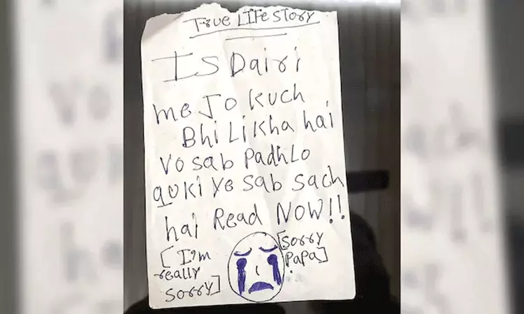 బాధితుల గదిలో ఒక నోట్ దొరికింది, దానిలో ఎమోజి ఉంది, దానిలో ఈ డైరీలో మీరు ఏమి చూస్తున్నారో, ప్రతిదీ చదవండి, ఎందుకంటే ప్రతిదీ నిజమే. ఇప్పుడే చదవండి! నన్ను క్షమించండి, క్షమించండి పాపా ," అని ఏడుస్తున్న ఎమోజితో సూసైడ్ నోట్లో పేర్కొన్నారు.