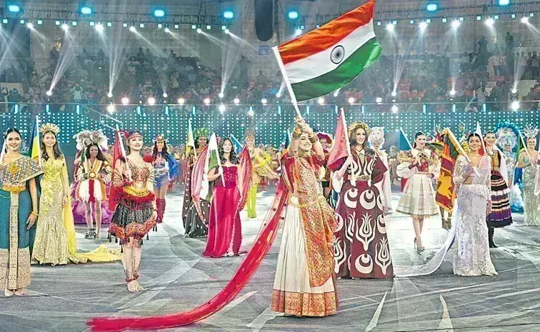 దివిలో ఉండే తారలంతా భువికి దిగి వస్తే... అందులోనూ మన భాగ్య నగరానికి వస్తే... గచ్చిబౌలిలోని ఇండోర్ స్టేడియంలో మిస్ వరల్డ్-2025 పోటీల ప్రారంభ కార్యక్రమం సరిగ్గా అలాగే కనిపించింది. అందం.. ఆత్మవిశ్వాసం.. అభినయం కలగలసిన 110 దేశాలకు చెందిన సుందరీమణులు హొయలుపోతూ సంప్రదాయ వస్త్రధారణతో ర్యాంప్పై మెరిశారు. దేవకన్యలను తలపించారు. వారి అందం ముందు.. విద్యుత్తు కాంతులే వెలవెలబోయాయి. ఈ ర్యాంప్ వాక్ ప్రపంచ సుందరి పోటీల ప్రారంభ వేడుకలను సప్తవర్ణ శోభితం చేశాయి. మిస్ వరల్డ్ 72వ ఎడిషన్ పోటీలు హైదరాబాద్ కేంద్రంగా ఘనంగా ప్రారంభమయ్యాయి. అందగత్తెలు తమను తాము పరిచయం చేసుకోగా.. సుందరీమణులను తెలంగాణ సంప్రదాయ కళాకారుల బృందం నృత్యాలు చేస్తూ వేదిక మీదకు స్వాగతించింది. ముఖ్యమంత్రి రేవంత్ రెడ్డి ఈ ఆరంభ వేడుకలకు హాజరయ్యారు.