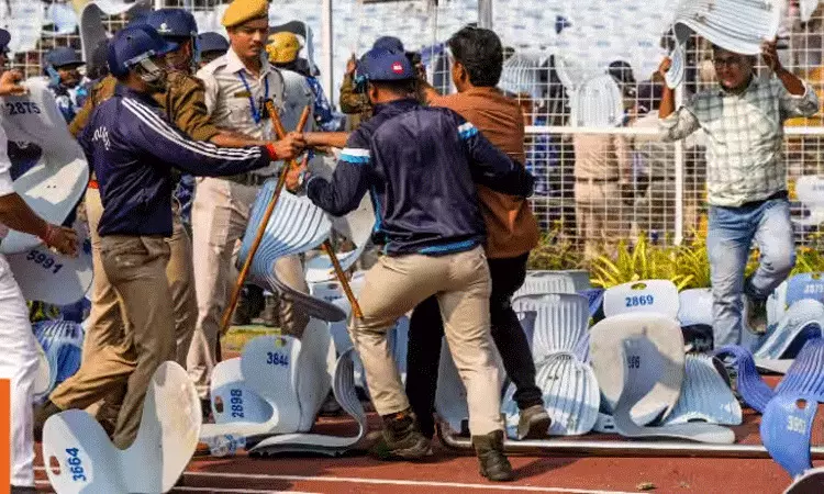 శనివారం కోల్కతాలోని సాల్ట్ లేక్ స్టేడియంలో గందరగోళం చెలరేగిన తర్వాత లియోనెల్ మెస్సీ GOAT ఇండియా టూర్ 2025 నిర్వాహకుడిని అదుపులోకి తీసుకున్నారు. మెస్సీ స్టేడియంలో కొద్దిసేపు కూడా కనిపించకపోవడంతో అభిమానులు ఆందోళనకు గురయ్యారు. అర్జెంటీనా ఆటగాడి చుట్టూ పెద్ద సంఖ్యలో భద్రతా సిబ్బంది, ప్రముఖులే ఉన్నారు. దాంతో అభిమానులకు అతడిని చూసే అవకాశం రాలేదు.