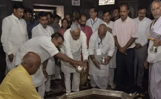 Nitish Kumar: బిహార్లో మరో వివాదం.. ముస్లిం మంత్రితో కలిసి ఆలయంలోకి వెళ్లిన సీఎం..