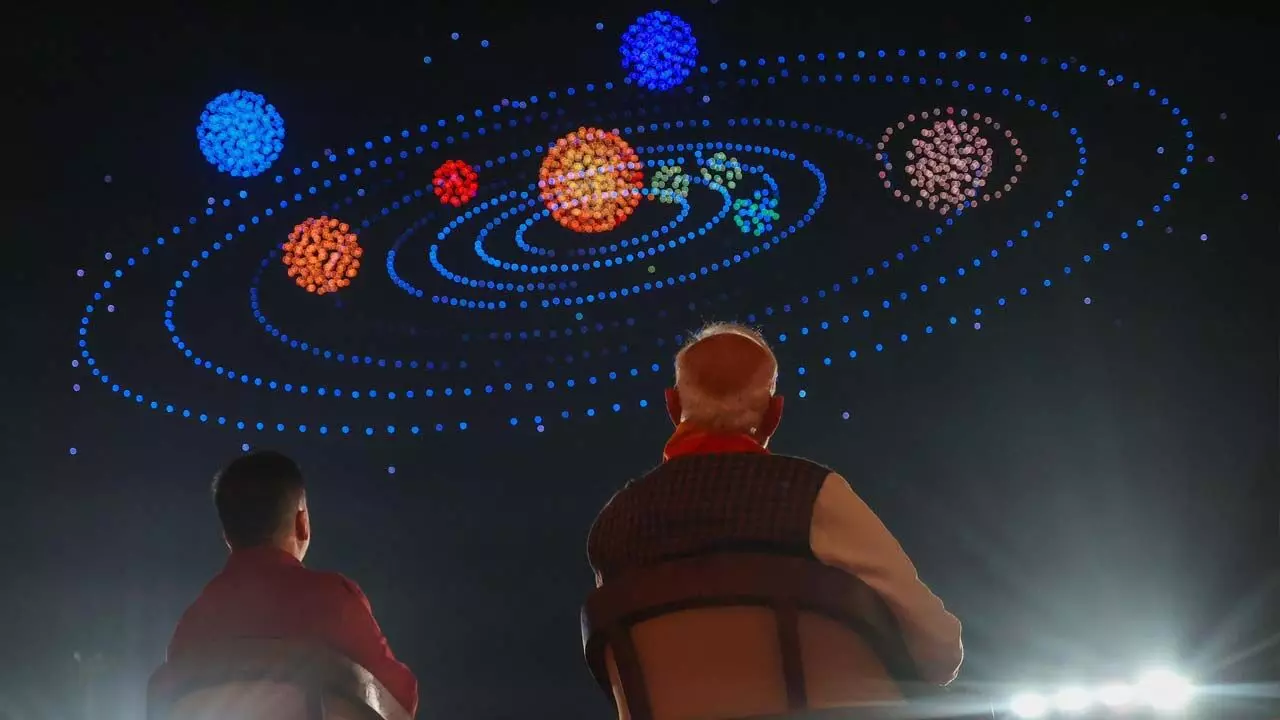 ఈ వేడుకల్లో ప్రధాన ఆకర్షణగా నిలిచిన డ్రోన్ షో ఆద్యంతం అబ్బురపరిచింది. సుమారు 3,000 డ్రోన్లను ఉపయోగించి ఆకాశంలో అద్భుతమైన ఆకృతులను ఆవిష్కరించారు, ఇది దేశంలోని ఒక ఆలయ ప్రాంగణం సమీపంలో జరిగిన అతిపెద్ద ప్రదర్శనలలో ఒకటిగా నిలిచింది. సుమారు 15 నిమిషాల పాటు సాగిన ఈ ప్రదర్శనలో 370 మీటర్ల వెడల్పు కలిగిన సోమనాథ్ ఆలయ 3D ప్రతిరూపాన్ని గాలిలో నిర్మించి భక్తులను మంత్రముగ్ధులను చేశారు. అలాగే, ఆకాశంలో సుమారు 280 మీటర్ల ఎత్తులో పరమశివుడి ఆకారాన్ని, 330 మీటర్ల పొడవుతో భారీ శివలింగాన్ని డ్రోన్ల సాయంతో కళ్లకు కట్టినట్లు చూపించారు. ఆధ్యాత్మికతతో పాటు జాతీయ సమగ్రతను చాటిచెబుతూ ‘అఖండ సోమనాథ్, అఖండ భారత్’ అనే సందేశాన్ని ఆకాశంలో ఆవిష్కరించారు.