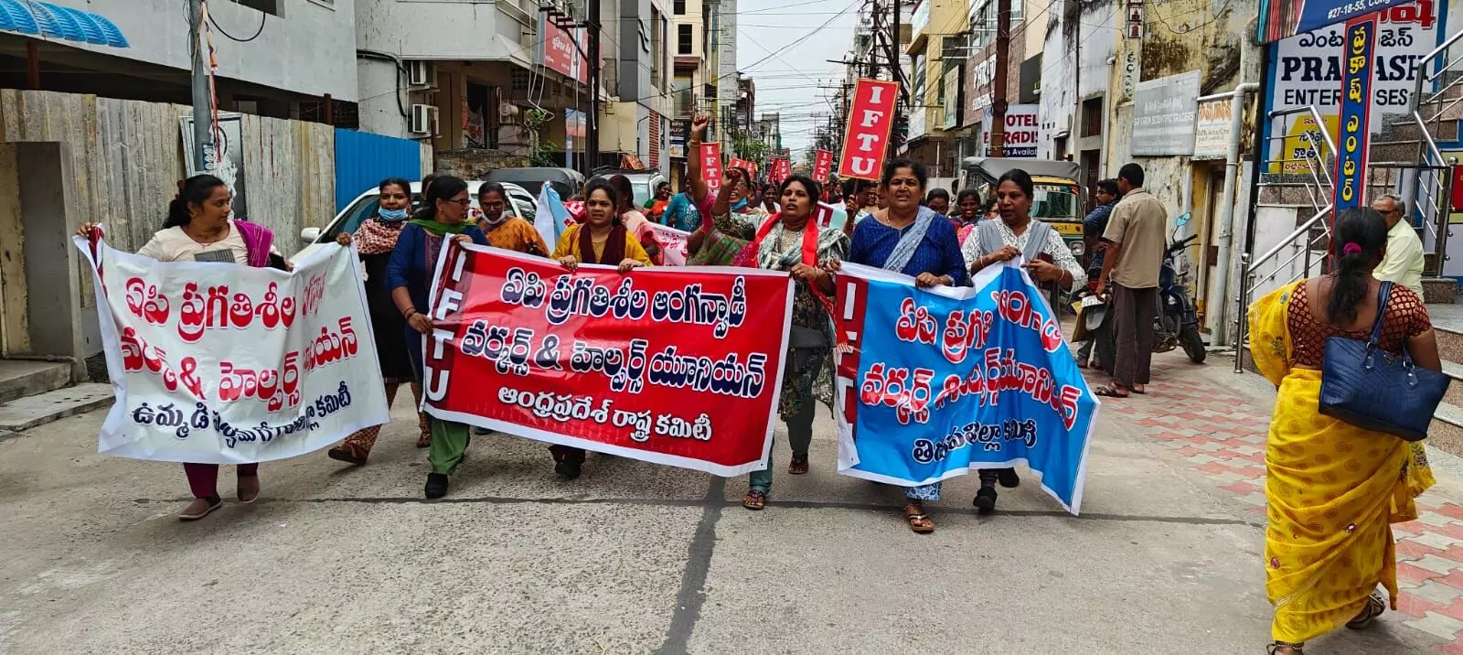 ఆంధ్రప్రదేశ్లో వేతనాల పెంపు, మినీ అంగన్వాడీ వ్యవస్థ రద్దు సహా పలు డిమాండ్లతో ఛలో విజయవాడకు పిలుపునిచ్చిన అంగన్వాడీలను పోలీసులు ఎక్కడికక్కడ అదుపులోకి తీసుకుంటున్నారు. ఛలో విజయవాడకు అనుమతి లేదంటూ రాష్ట్రవ్యాప్తంగా వివిధ జిల్లాల్లో అంగన్వాడీలను పోలీసులు అదుపులోకి తీసుకున్నారు.మారు వేషాల్లో విజయవాడకు చేరుకున్న అంగన్వాడీలను విజయవాడ రైల్వే స్టేషన్, బస్టాండ్ వద్ద అరెస్టు చేసి ప్రైవేట్ కల్యాణ మండపాలకు పోలీసులు తరలిస్తున్నారు. చలో విజయవాడ కార్యక్రమాన్ని జయప్రదం చేస్తామని స్పష్టం చేస్తున్న అంగన్వాడి కార్మికులు.. తమ సమస్యలు ప్రభుత్వం దృష్టికి తీసుకువెళ్లాలని చేపట్టిన ఛలో విజయవాడను పోలీసులు అడ్డుకోవడం దుర్మార్గమని విమమర్శించారు. అంగన్వాడీల అరెస్టును వామపక్షాలు ఖండించాయి. అంగన్వాడీ మహిళల పట్ల జగన్ ప్రభుత్వ నిర్బంధ విధానానికి ఇదో నిదర్శనమని వామపక్ష నేతలు మండిపడ్డారు.