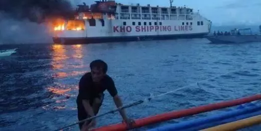 ఫిలిప్పీన్స్లోని బోహోల్ ద్వీపంలో 120 మంది ప్రయాణిస్తున్న నౌకలో మంటలు చెలరేగాయి. అయితే అప్రమత్తమైన కోస్టోగార్డు మంటల్ని ఆర్పేసింది. మొత్తం 120 మంది ప్రయాణికులతో పాటు సిబ్బందిని కాపాడారు. మంటలు ఆరిపోయాయని, ఎలాంటి ప్రాణ నష్టం జరగలేదని తెలిపారు కోస్ట్ గార్డు సిబ్బంది. నౌక సిక్విజోర్ మరియు బోహోల్ దీవుల మధ్య ప్రయాణిస్తుండగా మంటలు చెలరేగాయి. కోస్ట్ గార్డ్ పరిస్థితిని పర్యవేక్షించడానికి రెస్క్యూ షిప్లు పాంగ్లావ్, బోహోల్ జలాల్లోనే ఉంటాయని తెలిపారు అధికారులు.