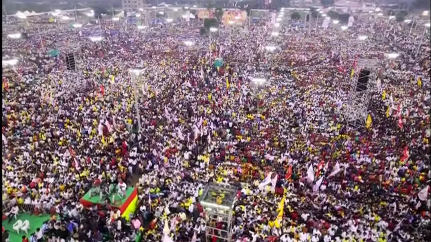 యువగళం - నవశకం విజయోత్సవ సభకు జనం పోటెత్తడంతో పోలిపల్లి సభా ప్రాంగణం కిక్కిరిసిపోయింది. సభా ప్రాంగణానికి నలుదిక్కులా, కనుచూపుమేర ఎటుచూసినా జనమే కనిపించారు.