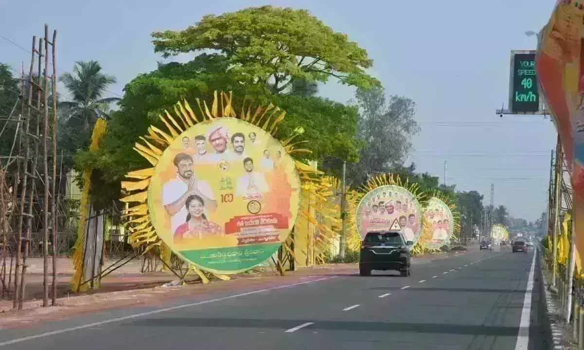 తెలుగుదేశం పార్టీ నిర్వహించనున్న మహానాడుకు రాజమహేంద్రవరం సర్వాంగ సుందరంగా ముస్తాబయింది. రెండు రోజుల పాటు జరగనున్న కార్యక్రమం నేపథ్యంలో జెండాలు, తోరణాలు, ఫ్లెక్సీలతో రహదారులు పసుపుమయంగా మారాయి. రేపు ప్రతినిధుల సభ జరగనుండగా.. టీడీపీ జాతీయ అధ్యక్షుడిని ఎన్నుకోనున్నారు. చంద్రబాబు, నారా లోకేష్ ఈ మధ్యాహ్నానికి రాజమండ్రి చేరుకోనున్నారు. ఈ కార్యక్రమంలో 24 తీర్మానాలను ప్రవేశపెట్టనున్నారు.