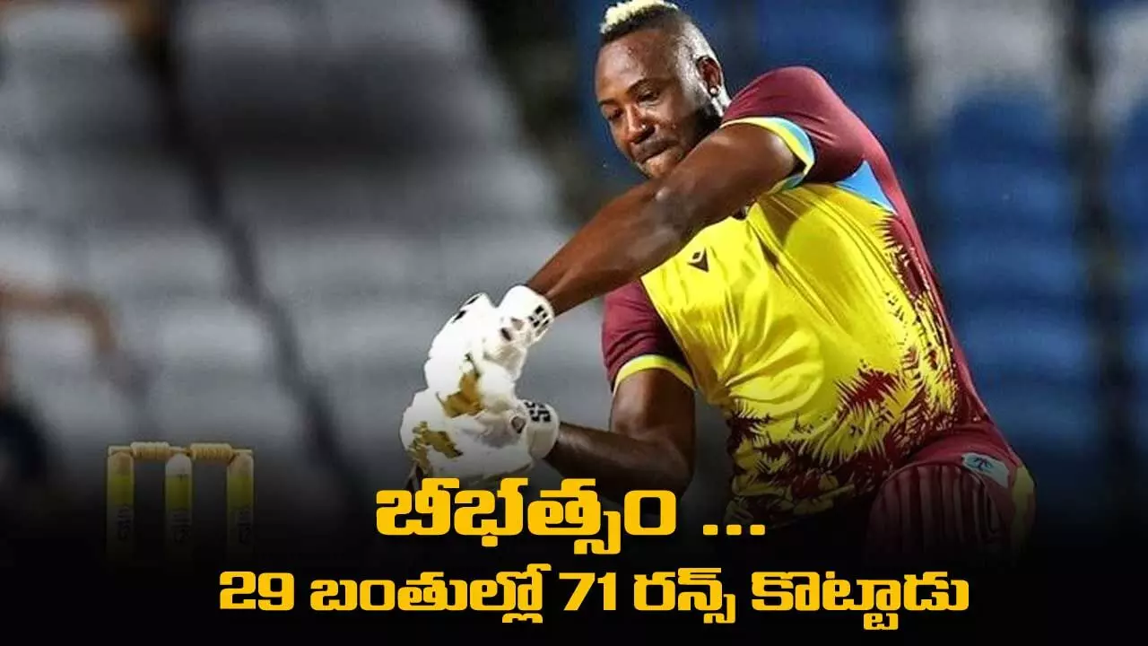వెస్టిండీస్ హిట్టర్ ఆండ్రీ రస్సెల్ (Andre Russell ) బీభత్సం సృష్టించాడు. ఆస్ట్రేలియాతో జరుగుతున్న మూడో టీ20 మ్యాచ్ లో కంగారు బౌలర్లను ఊచకోత కోశాడు. కేవలం 29 బంతుల్లో 71 రన్స్ కొట్టాడు ఇందులో 7 సిక్సులు, 4 ఫోర్లు ఉన్నాయి. టాస్ గెలిచి బ్యాటింగ్ ఎంచుకుని 79 పరుగులకు తన జట్టు 5 వికెట్లు కోల్పోయి కష్టా్ల్లో ఉన్నప్పుడు క్రీజ్ లోకి వచ్చిన రస్సెల్ ఆస్ట్రేలియా బౌలర్లపై ఎదురుదాడికి దిగాడు.