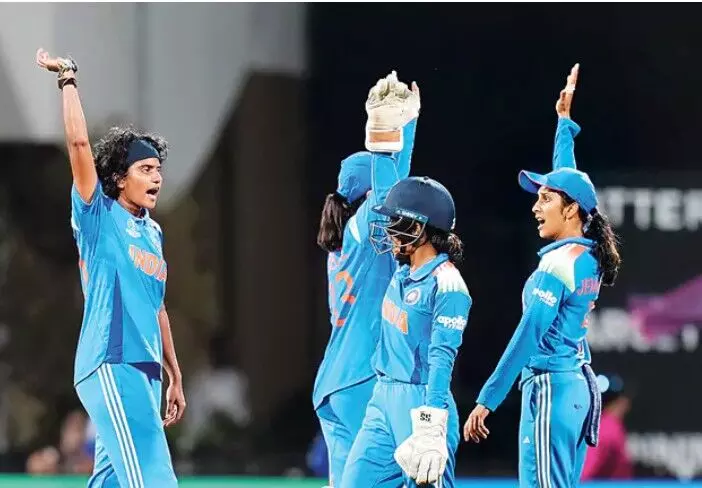 భారత్, బంగ్లాదేశ్ మధ్య మహిళల వన్డే ప్రపంచకప్ మ్యాచ్ వర్షం కారణంగా రద్దయింది. అయితే ఆదివారం భారత జట్టు తిరుగులేని ఆధిపత్యాన్ని ప్రదర్శించింది. మ్యాచ్ సాగి ఉంటే అలవోకగా గెలిచేదే. మొదట బంతితో బంగ్లాను భారత్ దెబ్బతీసింది. వర్షం వల్ల ఇన్నింగ్స్ను 27 ఓవర్లకు కుదించగా.. స్పిన్నర్లు రాధ యాదవ్ (3/30), శ్రీచరణి (2/23) ధాటికి బంగ్లా 9 వికెట్లకు 119 పరుగులే చేయగలిగింది. రేణుక, దీప్తి, అమన్జ్యోత్ తలో వికెట్ పడగొట్టారు. షర్మిన్ అక్తర్ (36) బంగ్లా టాప్ స్కోరర్. డక్వర్త్ లూయిస్ విధానంలో లక్ష్యాన్ని 126 పరుగులకు సవరించగా.. వర్షంతో ఆట నిలిచిపోయే సమయానికి భారత్ 8.4 ఓవర్లలో 57 పరుగులు చేసింది. ఓపెనర్లు స్మృతి మంధాన (34 నాటౌట్; 27 బంతుల్లో 6×4), అమన్జ్యోత్ కౌర్ (15 నాటౌట్; 25 బంతుల్లో 2×4) రాణించారు. షర్మిన్, శోభన మోస్తరీ (26) నాలుగో వికెట్కు 38 పరుగులు జోడించారు. కానీ వేగంగా పరుగులు చేయలేకపోయారు. రాధ యాదవ్, శ్రీచరణి విజృంభించడంతో బంగ్లా 28 పరుగుల వ్యవధిలో చివరి ఏడు వికెట్లు కోల్పోయింది. ఛేదనలో ఓపెనర్ స్మృతి మంధాన చెలరేగడంతో భారత్ వడివడిగా లక్ష్యం దిశగా సాగింది. అమన్జ్యోత్ కౌర్తో కలిసి ఇన్నింగ్స్ ఆరంభించిన స్మృతి అలరించింది.