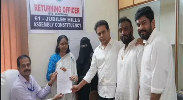 జూబ్లీహిల్స్ బీఆర్ఎస్ అభ్యర్థి మాగంటి సునీత నామినేషన్ దాఖలు చేశారు. షేక్పేట్ తహసీల్దార్ ఆఫీస్లో బీఆర్ఎస్ వర్కింగ్ ప్రెసిడెంట్ కేటీఆర్ సహా పలువురు ముఖ్య నేతలతో వెళ్లి తొలి సెట్ నామినేషన్ చేశారు. కాగా, ఈ ఉపఎన్నికను బీఆర్ఎస్ ప్రతిష్టాత్మకంగా తీసుకుంది. సిట్టింగ్ స్థానాన్ని దక్కించుకునేందుకు తీవ్రంగా ప్రయత్నాలు చేస్తోంది. నామినేషన్ వేయడానికి వెళ్లేముందు తెలంగాణ భవన్లో కేటీఆర్ మీడియాతో మాట్లాడారు. జూబ్లీహిల్స్లో జరుగుతున్న ఎన్నిక పార్టీల మధ్య జరిగే ఎన్నిక కాదు.. పదేండ్ల అభివృద్ధి పాలనకు, రెండేండ్ల అరాచక పాలనకి మధ్య జరుగుతున్న ఎన్నిక అని అన్నారు.
