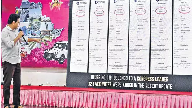 ‘జూబ్లీహిల్స్ ఉప ఎన్నికల్లో ప్రజలు ఓట్లు వేయరని కాంగ్రె్సకు అర్థమైంది. మనల్ని ఓడించాలనే కాంగ్రెస్ ఒక్క ఇంట్లోనే 43 దొంగ ఓట్లు నమోదు చేయించింది. ఇలా వేల ఓట్లు చేర్చింది. జూబ్లీహిల్స్లో కొట్టే దెబ్బకు ఢిల్లీలో కాంగ్రెస్ అధిష్ఠానం అదిరిపడాల’ని బీఆర్ఎస్ వర్కింగ్ ప్రెసిడెంట్ కేటీఆర్ కార్యకర్తలకు పిలుపునిచ్చారు. రహమత్నగర్ డివిజన్ పార్టీ కార్యకర్తల సమావేశంలో, రాష్ట్ర ఎన్నికల ప్రధాన అధికారికి ఫిర్యాదు చేశారు. జూబ్లీహిల్స్లో 400 పోలింగ్ కేంద్రాల పరిధిలో 50-100 చొప్పున మొత్తం 20 వేల దొంగ ఓట్లను నమోదు చేయించినట్లు తమ దృష్టికి వచ్చిందని తెలిపారు. కాంగ్రెస్ గురించి, రేవంత్ రెడ్డి గురించి హైదరాబాద్ ప్రజలకు బాగా తెలుసని, అందుకే గత అసెంబ్లీ ఎన్నికల్లో ఆ పార్టీకి ఒక్క సీటు కూడా దక్కలేదని వ్యాఖ్యానించారు. జూబ్లీ హిల్స్ ఉప ఎన్నిక కారుకు, బుల్డోజరుకు మధ్య జరుగుతోందని, ఎన్నిక తర్వాత మీ ఇంటికి కారు రావాలా, బుల్డోజరు రావాలా అనేది ప్రజలు ఆలోచించాలన్నారు.