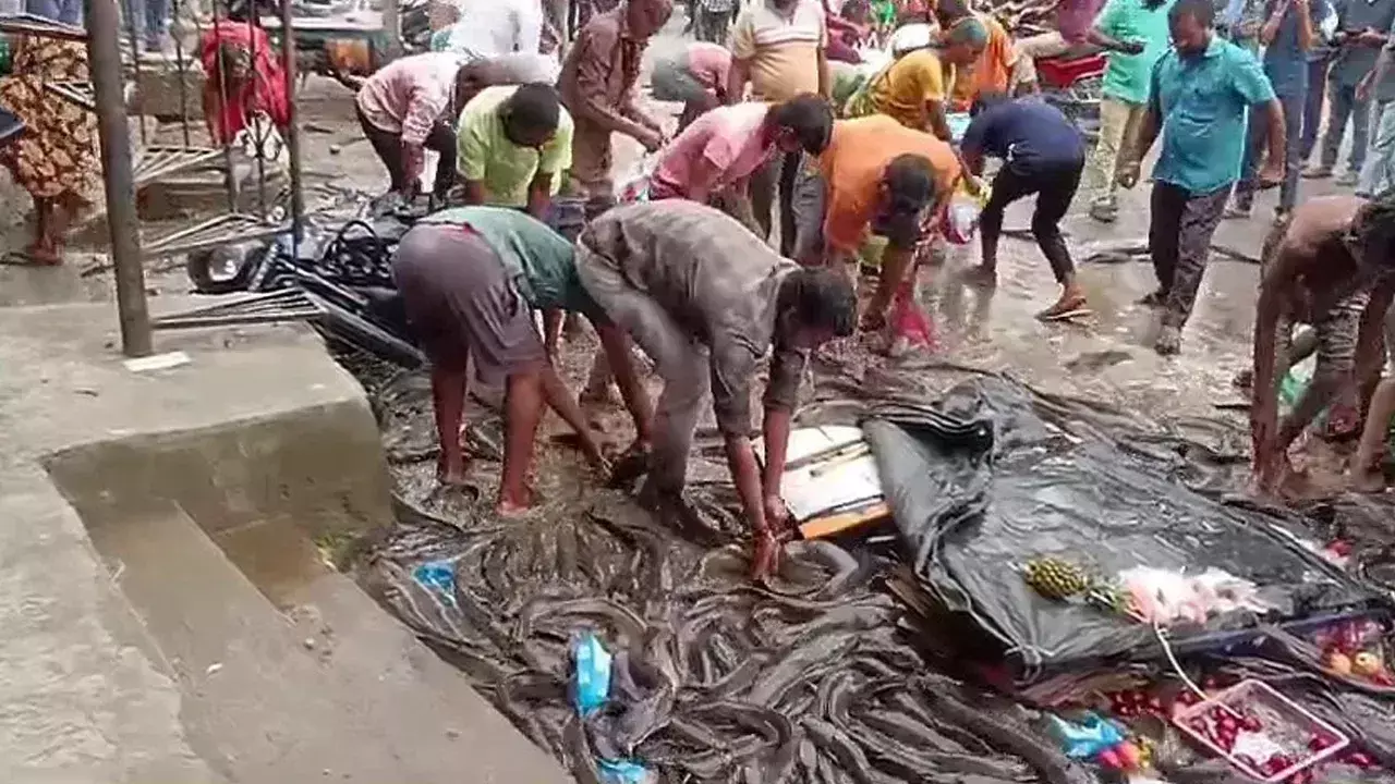చేపల లోడుతో వెళ్తున్న లారీ బోల్తా పడడంతో వాటిని ఏరుకునేందుకు జనం పెద్ద ఎత్తున తరలివచ్చారు. రోడ్డుపై చెల్లాచెదురుగా పడిన చేపలను ఏరుకుని సంచుల్లో వేసుకుని తీసుకెళ్లారు. మహబూబాబాద్ జిల్లా మరిపెడలో ఈ ఘటన జరిగింది. ఖమ్మం వైపు నుంచి వరంగల్ వెళ్తుండగా లారీ అదుపుతప్పి ఒక్కసారిగా బోల్తాపడింది. ఈ ఘటనలో ఒకరికి గాయాలయ్యాయి. లారీ బోల్తాపడడంతో అందులో బతికున్న చేపలన్నీ రోడ్డుపై చెల్లాచెదురుగా పడి కొట్టుకున్నాయి. వాటిని చూసిన జనం ఏరుకునేందుకు పోటీపడ్డారు. దీంతో ట్రాఫిక్కు అంతరాయం ఏర్పడింది. సమాచారం అందుకున్న పోలీసులు వెంటనే ఘటనా స్థలానికి చేరుకుని జనాన్ని అదుపు చేశారు.