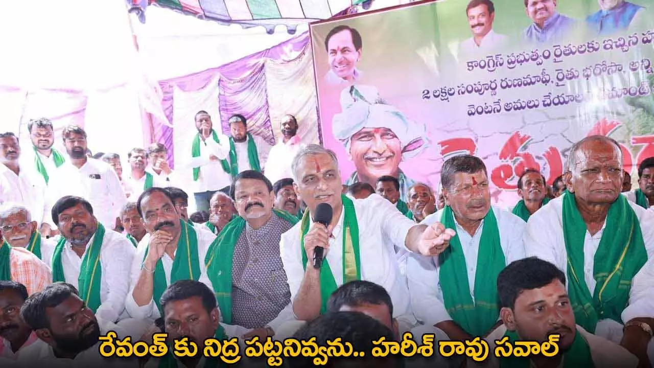 కాంగ్రెస్ ప్రభుత్వం రైతులకు ఇచ్చిన హామీలు అమలు చేయకుండా రైతులను మోసం చేస్తోందని మాజీమంత్రి ఎమ్మెల్యే హరీష్ రావు విమర్శించారు. రైతు రుణమాఫి పూర్తి స్థాయిలో అయ్యే వరకు తాను నిద్ర పోను రేవంత్ రెడ్డి నీ నిద్ర పోనియ్యనని హరీష్ రావు అన్నారు. సిద్దిపేట జిల్లా నంగునూరు మండల కేంద్రంలో రైతులకు ఇచ్చిన హామీలను అమలు చేయాలని డిమాండ్ చేస్తూ.. రైతు ధర్నాలో పాల్గొన్నారు హరీశ్. దసరాలోపు పూర్తిస్థాయిలో రుణమాఫీ కాకుంటే సెక్రటేరియట్ ముట్టడిస్తామని హరీష్ రావు హెచ్చరించారు.
