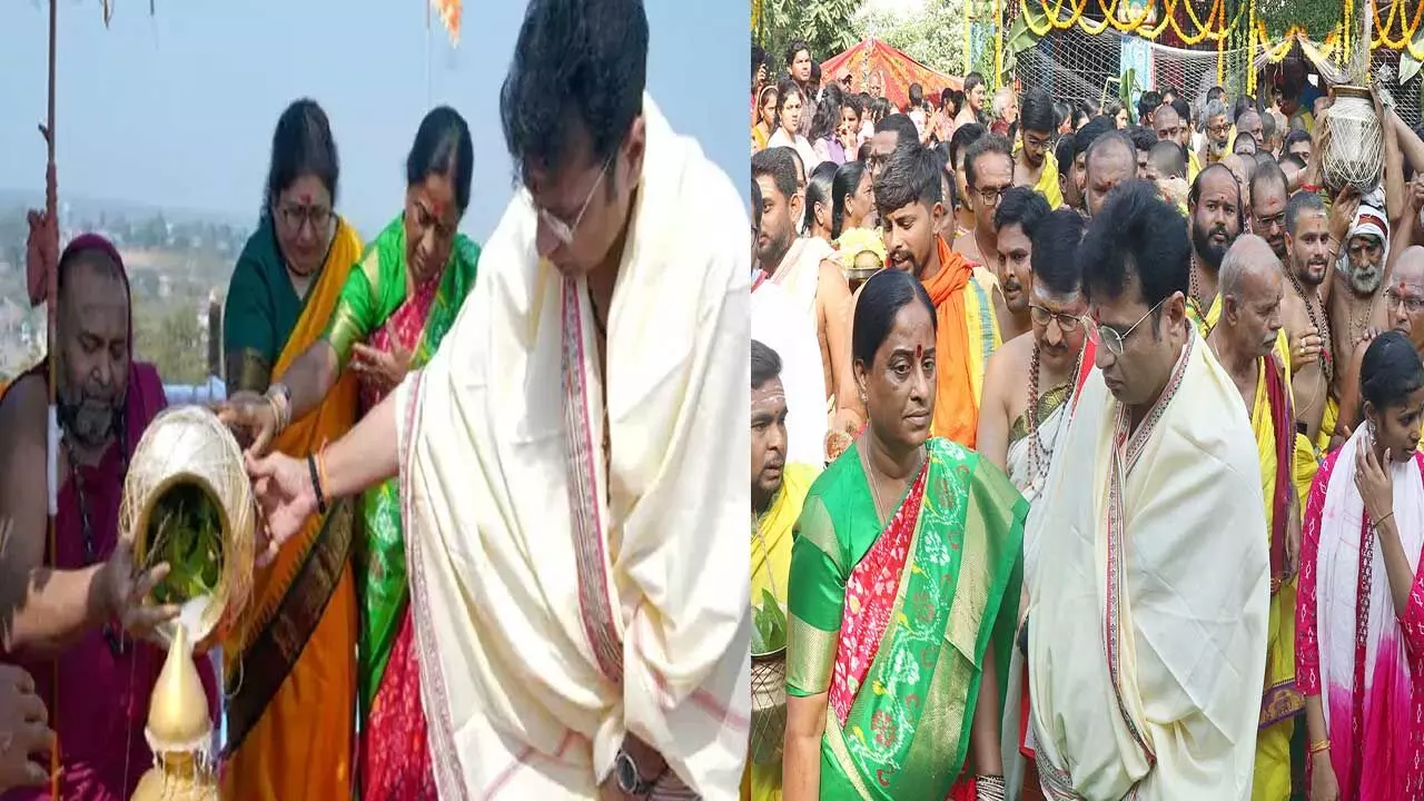 కాళేశ్వరంలో మూడు రోజుల పాటు నిర్వహించిన మహాకుంభాభిషేకం సందర్భంగా ప్రసాదాన్ని, త్రివేణి సంఘమ జలాలను రాష్ట్ర అటవీ, పర్యావరణ, దేవాదాయ, ధర్మదాయ శాఖ మంత్రి కొండా సురేఖ ఏఐసీసీ నేతలకు పంపించారు. జయశంకర్ భూపాలపల్లి జిల్లాలోని కాళేశ్వర, ముక్తీశ్వర దేవాలయంలో ఈనెల 7 నుంచి 9 వరకు మూడు రోజుల పాటు మహాకుంభాభిషేకం జరిగింది. 42 సంవత్సరాల తర్వాత నిర్వహించిన ఈ కుంభాభిషేకంలో దేశంలోని ప్రముఖ పీఠాధిపతులు పాల్గొన్నారు. ఈ సందర్భంగా శ్రీ ముక్తీశ్వరస్వామి ప్రసాదాన్ని, ప్రతిమలను, గోదావరి, ప్రాణహిత, సరస్వతి నదుల జలాలను మంత్రి సురేఖ ప్రత్యేకంగా కాంగ్రెస్ పార్టీ అధ్యక్షులు మల్లిఖార్జున ఖర్గే, మాజీ అధ్యక్షురాలు సోనియాగాంధీ, లోక్సభలో ప్రతిపక్ష నేత రాహుల్గాంధీ, పార్టీ ప్రధాన కార్యదర్శి, ఎంపీ ప్రియాంక గాంధీ, కేసీ వేణుగోపాల్లకు మంగళవారం ప్రత్యేకంగా పంపించారు. తెలంగాణలో కాంగ్రెస్ ప్రభుత్వం ఏర్పడిన తర్వాత మూడు రోజుల పాటు త్రివేణి సంఘమం వద్ద మహాకుంభాభిషేకం విజయవంతంగా జరిగిందని ఆమె ఏఐసీసీ నేతలకు రాసిన లేఖలో పేర్కొన్నారు. 42 సంవత్సరాల తర్వాత మహాకుంభాభిషేకం నిర్వహించినట్లు మంత్రి సురేఖ లేఖలో పేర్కొన్నారు. కాళేశ్వరం, ముక్తీశ్వరాలయంలో 1982లో మహాకుంభాభిషేకం జరిగిందని, ఆ తర్వాత ప్రజాపాలనలో కుంభాభిషేకం నిర్వహించడం ఎంతో గొప్ప అవకాశం కలిగిందన్నారు. ఈ కుంభాభిషేకం కార్యక్రమంలో శృంగేరి జగద్గురువులు భారత తీర్ధమహాస్వామి, విధుశేఖర భారతీ తీర్థ మహాస్వామి, తుని తపోవన పీఠాధిపతి సచ్చిదానందస్వామి పాల్గొన్నారని మంత్రి సురేఖ ఏఐసీసీ నేతలకు పంపిన లేఖలో గుర్తుచేశారు.