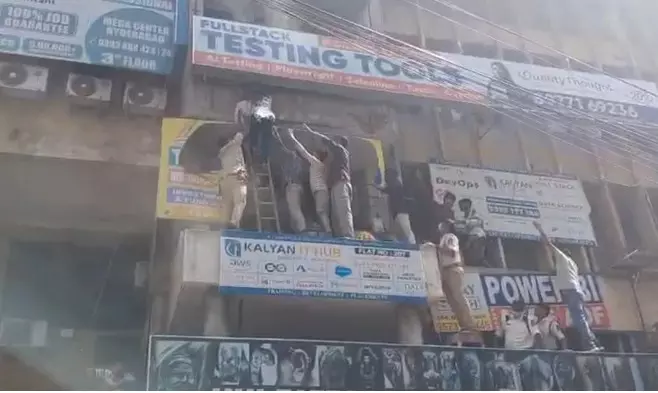 అమీర్పేట్ ప్రాంతంలో ఉన్న మైత్రీవనం నీలగిరి బ్లాక్లో భారీ అగ్నిప్రమాదం సంభవించింది. భవనంలోని నాలుగో అంతస్తులో ఉన్న ఒక ఇన్స్టిట్యూట్లో ఆకస్మికంగా మంటలు చెలరేగడంతో దట్టమైన పొగ మొత్తం అంతస్తును కమ్మేసింది. ఆ సమయంలో తరగతులు కొనసాగుతున్నట్లు సమాచారం. పొగ తీవ్రత పెరగడంతో పలువురు విద్యార్థులు లోపలే చిక్కుకుపోయారు. సమాచారం అందుకున్న వెంటనే పోలీసులు, అగ్నిమాపక సిబ్బంది ఘటనా స్థలానికి చేరుకుని సహాయక చర్యలు ప్రారంభించారు. మంటలను అదుపులోకి తీసుకురావడానికి ఫైర్ ఇంజిన్లు రంగంలోకి దిగాయి. భవనంలో చిక్కుకున్న విద్యార్థులను సురక్షితంగా బయటకు తీసుకురావడానికి రెస్క్యూ ఆపరేషన్ కొనసాగుతోంది. ముఖ్యంగా బాల్కనీల ద్వారా వారిని ఒక్కొక్కరిని కిందికి దింపే ప్రయత్నాలు చేస్తున్నారు.
