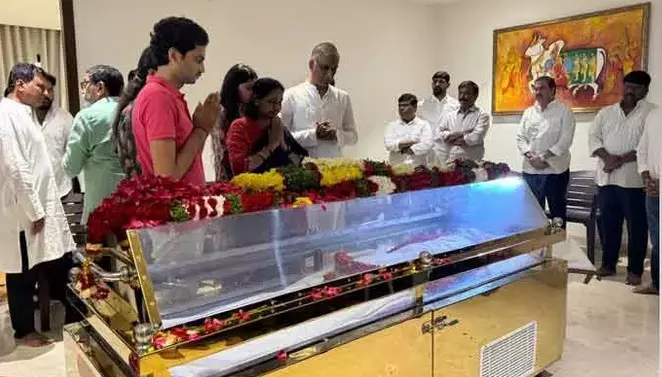 మాజీ మంత్రి, బీఆర్ఎస్ ఎమ్మెల్యే హరీష్ రావు.. తండ్రి తన్నీరు సత్యనారాయణ మంగళవారం ఉదయం కన్నుమూశారు. హైదరాబాద్లోని క్రిన్స్ విల్లాస్లో ఆయన పార్థివదేహాన్ని ఉంచారు. తాజాగా జూబ్లీహిల్స్ బీఆర్ఎస్ ఎమ్మెల్యే అభ్యర్థి మాగంటి సునీత.. సత్యనారాయణ పార్థివదేహానికి నివాళులు అర్పించి, కుటుంబ సభ్యులను పరామర్శించారు. వారికి ప్రగాఢ సానూభూతి తెలిపారు.