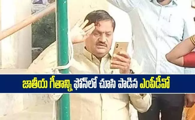 జాతీయ గీతాన్ని ఫోన్లో చూసి పాడిన ఎంపీడీవో!