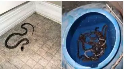 బిహార్లోని రోహ్తాస్ పట్టణంలో ఒకే ఇంట్లో 60 పాములు కనిపించడం కలకలం రేపింది. అగ్రోఢ్ ఖుర్ద్ గ్రామంలోని ఇంట్లో ఈ పాములు కనిపించాయి. వరుసగా ఒక్కో పాము ఇంట్లో నుంచి బయటకు వచ్చాయని ఇంటి యజమాని కృపానారాయణ్ పాండే చెప్పాడు. వచ్చిన పాములను వచ్చినట్టే 24 పాముల వరకూ చంపానని అయినా పాములు వస్తూనే ఉండడంతో అటవీ అధికారులకు సమాచారం ఇచ్చారు. రంగంలోకి దిగిన అటవీశాఖ అధికారులు చాలా పాములను పట్టుకున్నారు. ఇంటి గోడలు, ఫ్లోరింగు పగులగొట్టి సుమారు 30 పాములను బయటకు తీశారు. ఇవన్నీ ఇండియన్ కోబ్రా జాతికి చెందినవని పాములుగా గుర్తించారు. రెండంతస్తుల తమ ఇంటిని 1955లో నిర్మించినట్లు కృపానారాయణ్ తెలిపారు. ఇప్పుడు అక్కడ అన్ని పాములు భయపడేసరికి ఆయన భయపడిపోయారు.