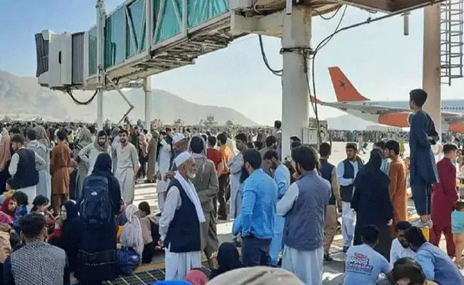 అఫ్గనిస్థాన్ రాజధాని నగరం కాబూల్ను తాలిబన్ల ఆక్రమించుకోవడంతో వేలాది మంది ప్రాణాలను అరచేతిలో పెట్టుకుని విదేశాలకు పారిపోతున్నారు. ఆదివారం నుంచి కాబూల్ విమానాశ్రయం కిక్కిరిసిపోయింది. దేశంలో లాక్డౌన్ ప్రకటించగానే రైల్వేస్టేషన్లు, బస్టాండ్లు కిక్కిరిసిపోవడం.. వాహనాలు ఎక్కేందుకు ప్రజలు ఎగబడినట్టు ప్రస్తుతం అఫ్గానిస్థాన్లోని అంతర్జాతీయ విమానాశ్రయ పరిస్థితి అలానే ఉంది. వేలాది మంది ప్రజలు దేశం వీడేందుకు ఏకంగా విమానాల వద్దకే పరుగులు పెడుతున్నారు. ప్రయాణికులను అదుపుచేయడానికి కాల్పులు జరపడంతో ఐదుగురు ప్రాణాలు కోల్పోయారు.