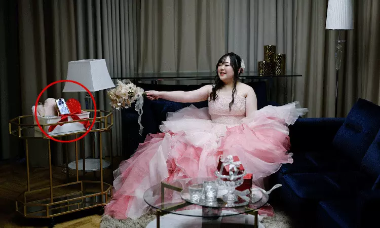 వివాహ చిత్రీకరణ కోసం, AR గ్లాసెస్ ధరించిన ఒక ఫోటోగ్రాఫర్, వర్చువల్ వరుడి చిత్రానికి స్థలం ఉండేలా, పిక్చర్ ఫ్రేమ్లో సగం ఒంటరిగా నిలబడమని నోగుచిని ఆదేశించాడు.