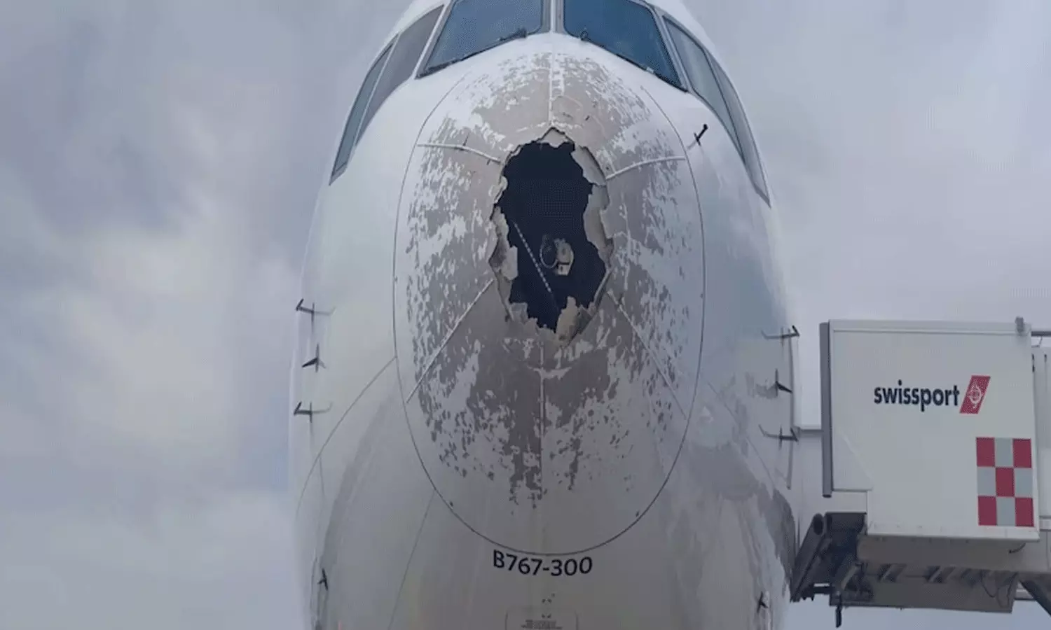 వడగళ్ల వానతో దెబ్బతిన్న విమానం.. అత్యవసర ల్యాండింగ్