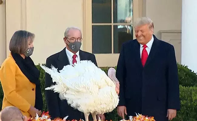 వైట్హౌస్లో సంప్రదాయం ప్రకారం నిర్వహించే థ్యాంక్స్ గివింగ్ డేలో డొనాల్డ్ ట్రంప్, మెలానియా దంపతులు పాల్గొన్నారు. ఈ కార్యక్రమానికి ముందు ది నేషనల్ థ్యాంక్స్ గివింగ్ టర్కీ వేడుక జరిగింది. వైట్హౌస్ రోజ్గార్డెన్లో జరిగిన ఆ కార్యక్రమంలో ట్రంప్ తనదైన శైలిలో జోకులు వేస్తూ ఉత్సాహంగా గడిపారు. ఈ సందర్భంగా కార్న్ అనే టర్కీ కోడిని క్షమించి ప్రాణభిక్ష పెట్టారు. దీంతో పాటు కోబ్ అనే టర్కీ కోడిని కూడా క్షమించి వదిలేశారు. అనంతరం రుచికరమైన వంటకాలతో విందు కొనసాగింది.