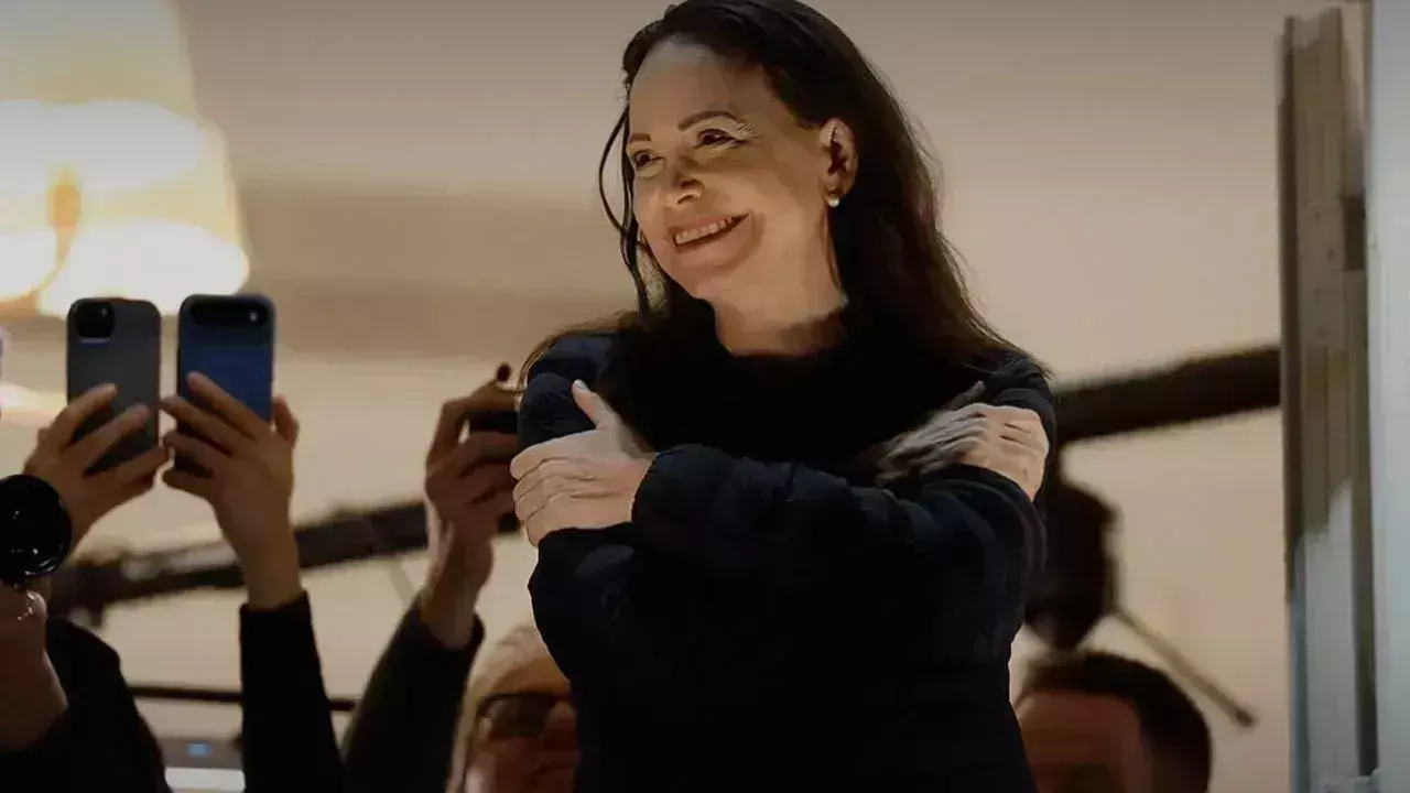 చాలా రోజుల తర్వాత వెనిజులా ప్రతిపక్ష నాయకురాలు మరియా కొరీనా మచాడో బహిరంగంగా కనిపించారు. బుధవారం అర్ధరాత్రి నార్వే రాజధాని ఓస్లోలోని గ్రాండ్ హోటల్ దగ్గర ప్రత్యక్షమయ్యారు. హోటల్లోని బాల్కనీ దగ్గర అందరికీ చేతులు ఊపుతూ.. అభివాదం చేస్తూ.. చేతులు ఎత్తి నమస్కరిస్తూ కనిపించారు. చాలా ఉల్లాసంగా.. ఉత్సాహంగా కనిపించారు. మద్దతుదారులతో కలిసి పాటలు కూడా పాడారు. ఈ ఏడాది జనవరిలో ప్రత్యక్షమైన ఆమె… తిరిగి ఇన్ని నెలల తర్వాత పబ్లిక్గా కనిపించారు.
